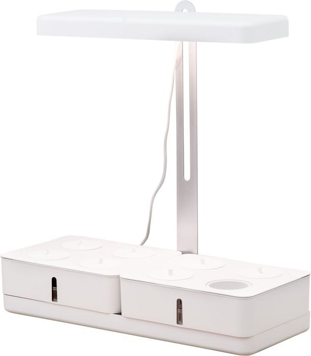Yrteille, taimille ja pienille huonekasveille tarkoitettu kasvivalo. Pakkauksessa mukana kahdeksan pientä ruukkua siementen istutusta varten sekä kaksi kasvatuslaatikkoa. Itsekasteleva astia, josta kasteluveden määrän voi helposti tarkistaa. Valospektri tuottaa kasveille tärkeää punaista valoa, joka edistää kasvua. Valaisimessa on automaattinen ajastin: valo palaa 16 tuntia ja sammuu 8 tunniksi.